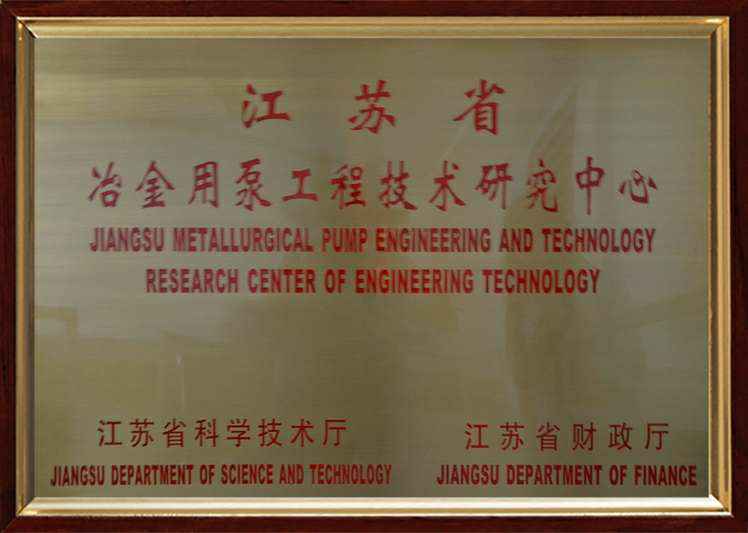 江苏省冶金用泵工程技术研究中心铜牌
